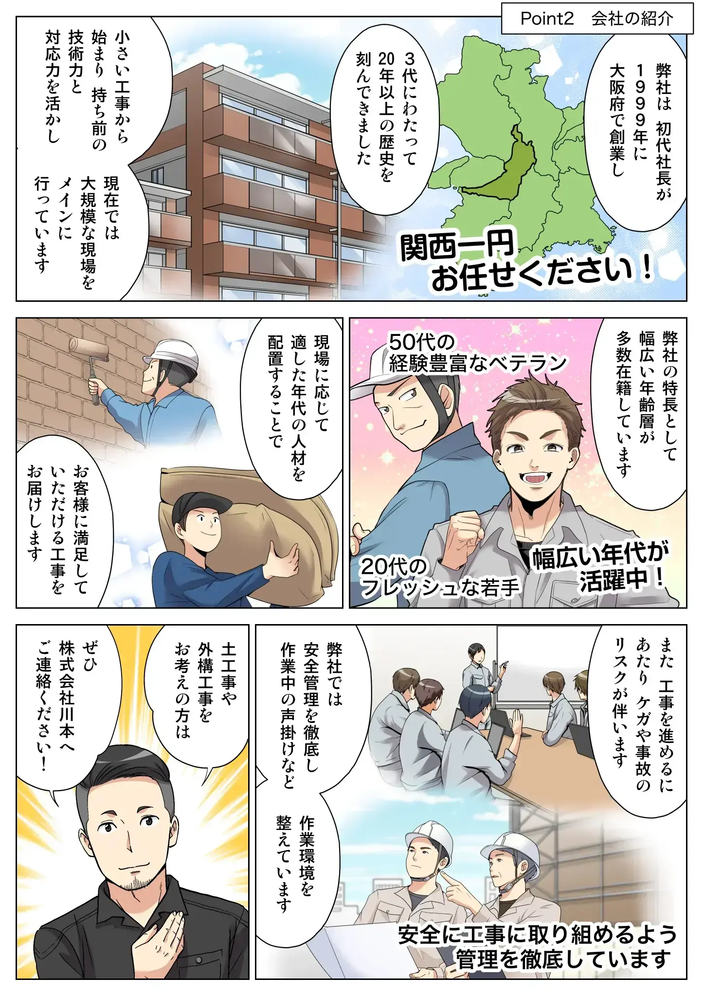 株式会社川本は、設立して20年以上の歴史があります。まずは会社の歩みと魅力を漫画でご紹介いたします。